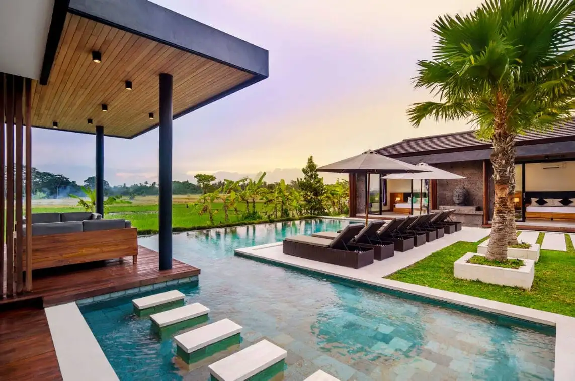La villa cuenta con cuatro elegantes dormitorios con baños en suite, amplias zonas de estar, una moderna cocina y un comedor. Una piscina privada, una terraza con vistas al jardín y una propiedad cerrada y segura proporcionan comodidad, privacidad y seguridad. Esta villa es perfecta para quienes valoran el estilo, la comodidad y una ubicación prestigiosa, al tiempo que representa una inversión inteligente en el sector inmobiliario de Bali.