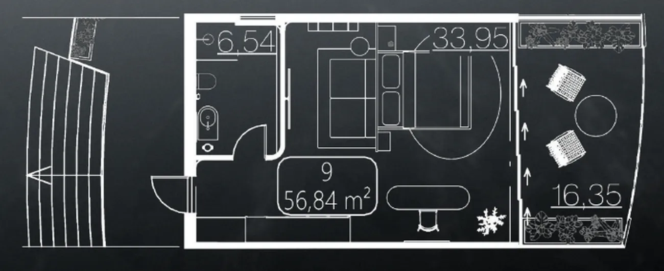 This is a generously proportioned studio apartment located within the unique SUNNY WELLNESS SPA HOTEL complex in the heart of Uluwatu, Bali. With a total area of 56.84 sq.m. , this residence offers an exceptional blend of comfortable living and holistic well-being. The layout includes 33.95 sq.m. of indoor living space, a 6.54 sq.m. bathroom, and an expansive 16.35 sq.m. balcony.