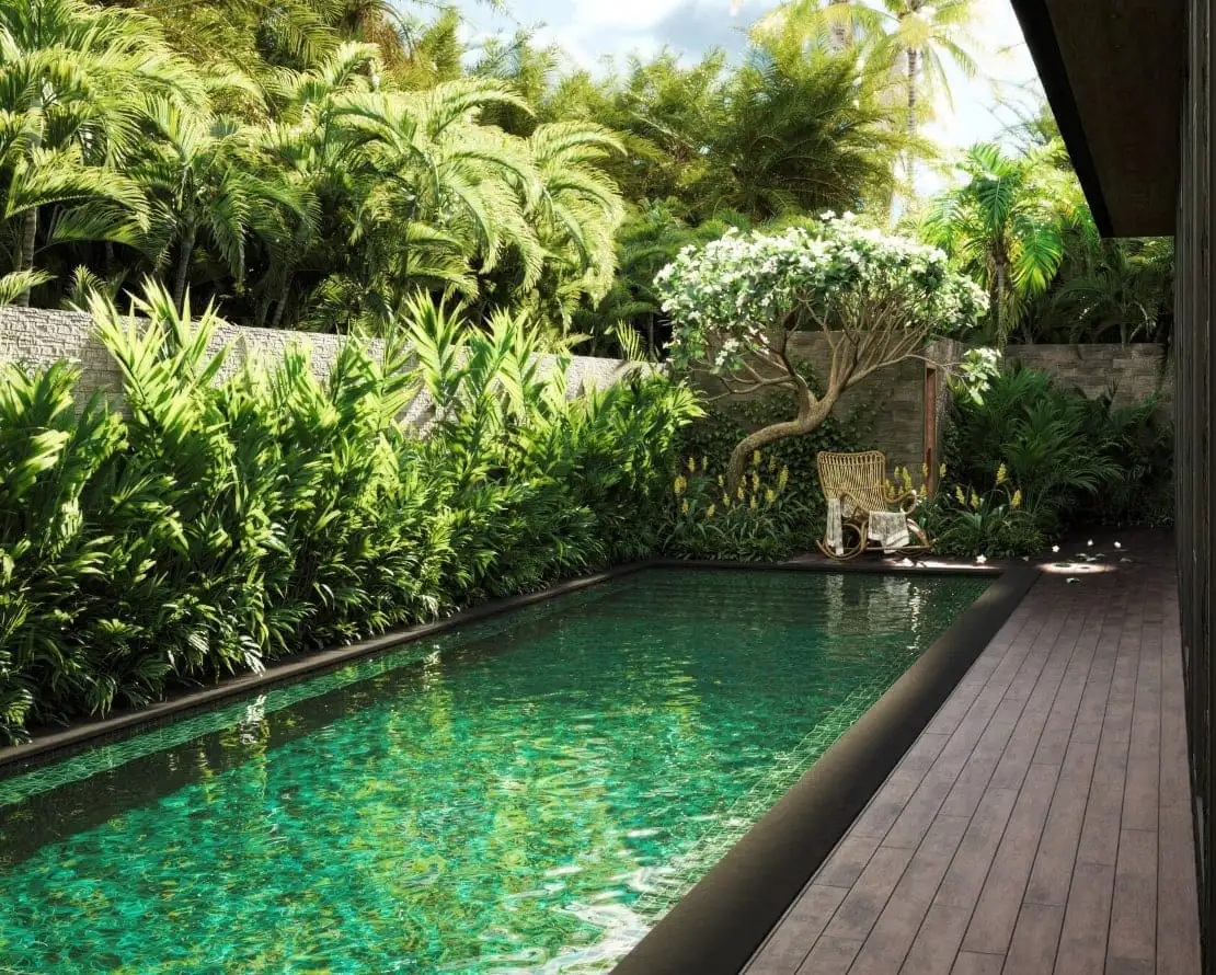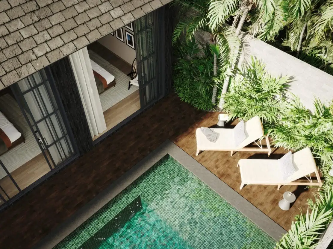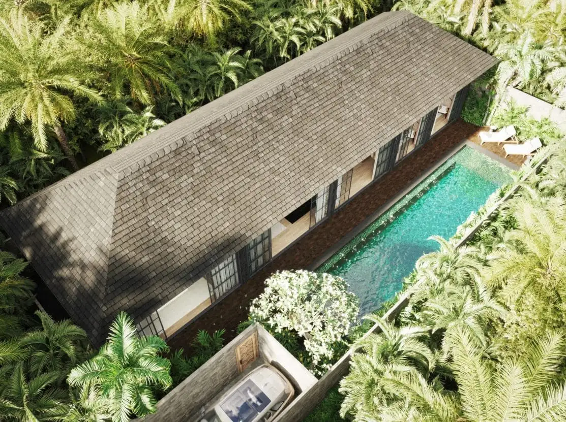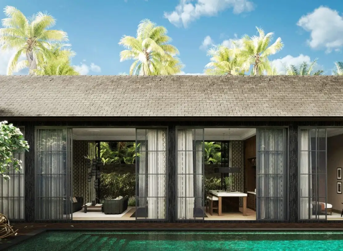 COCO SUGAR is an elegant and stylish villa located in the prestigious Jimbaran area on the Bukit Peninsula, Bali. Developed by DM Project, this villa is designed for those who appreciate refined aesthetics, quality materials, and thoughtful architecture. The villa features three spacious bedrooms and a modern open living concept, creating a comfortable and harmonious living space. The exterior stands out with a façade made of black volcanic stone, while the private swimming pool is finished with natural Sukabumi stone, emphasizing the villa’s exclusive character and connection to nature.