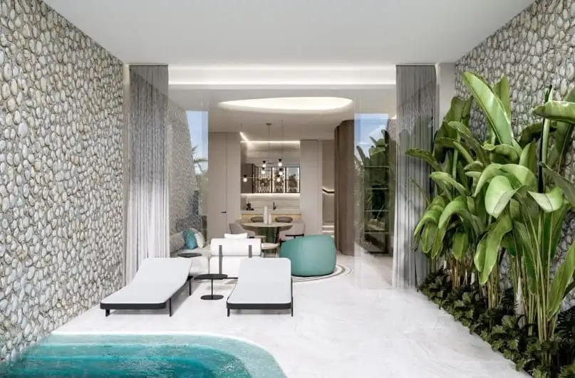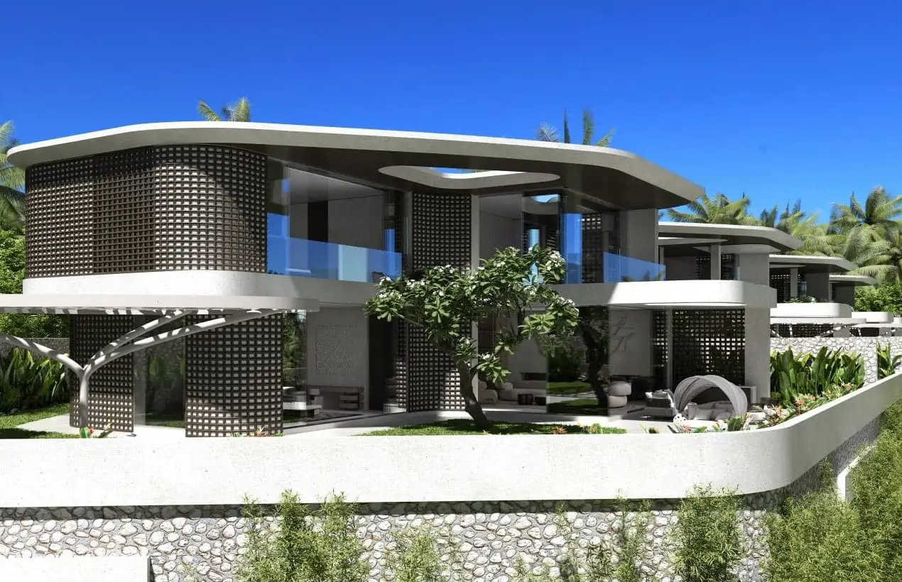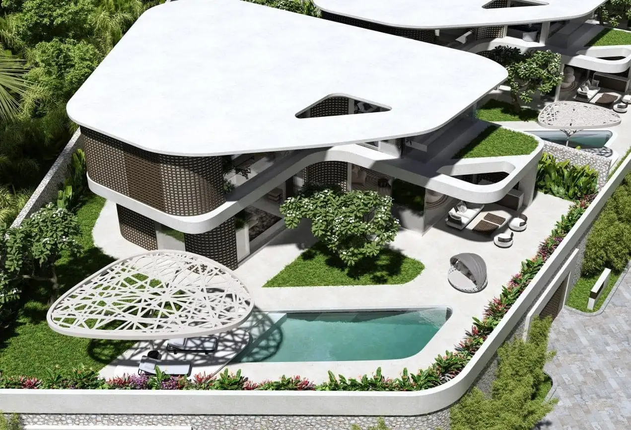 GOLDEN PEARL is a unique villa complex embodying the principles of bionic architecture, located in the cultural heart of Bali — Ubud. Situated along the famous Artists’ Trail, one of Ubud’s most sacred and inspiring locations, this complex offers a rare blend of luxury, nature, and creativity. Each villa features three spacious bedrooms designed with modern comfort in mind, along with access to a full range of amenities including a spa, elegant on-site restaurant, coworking space, gym, and a dedicated children’s area.