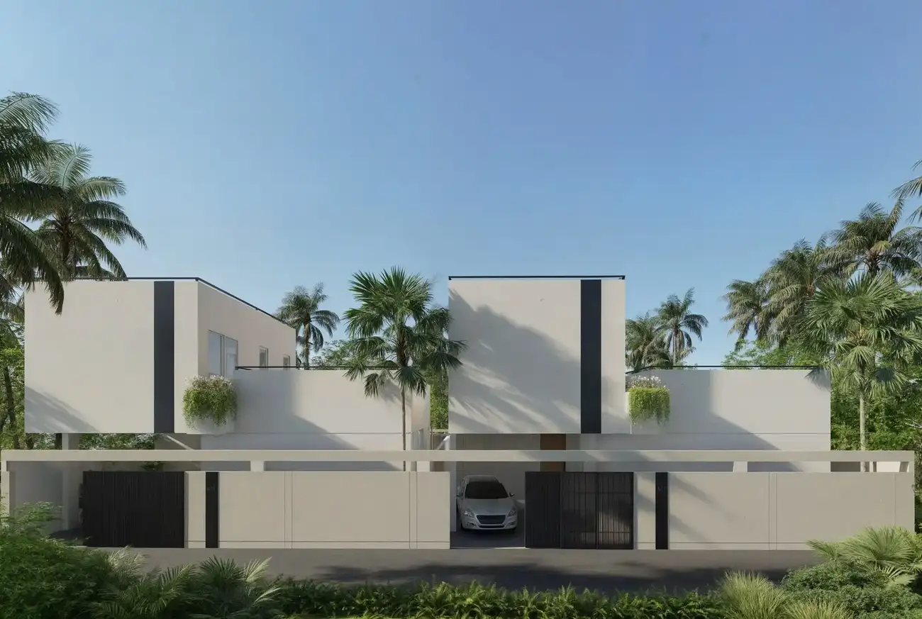 MARI VILLAS 1 is a collection of luxury villas located in the prestigious Sanur area of Bali, surrounded by lush greenery and designed with a strong focus on comfort, privacy, and elegance. A winding private access road enhances the exclusive atmosphere of the complex, creating a true sense of seclusion. Each villa features three bedrooms with en-suite bathrooms and walk-in wardrobes, a spacious enclosed living area seamlessly connected to an open-plan kitchen and dining space, and direct access to a cozy patio with a private swimming pool. Additional amenities include a BBQ area, garage, and storage room, making the villas ideal for both comfortable living and leisure.