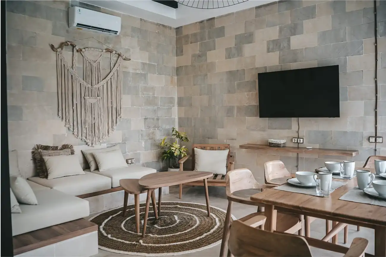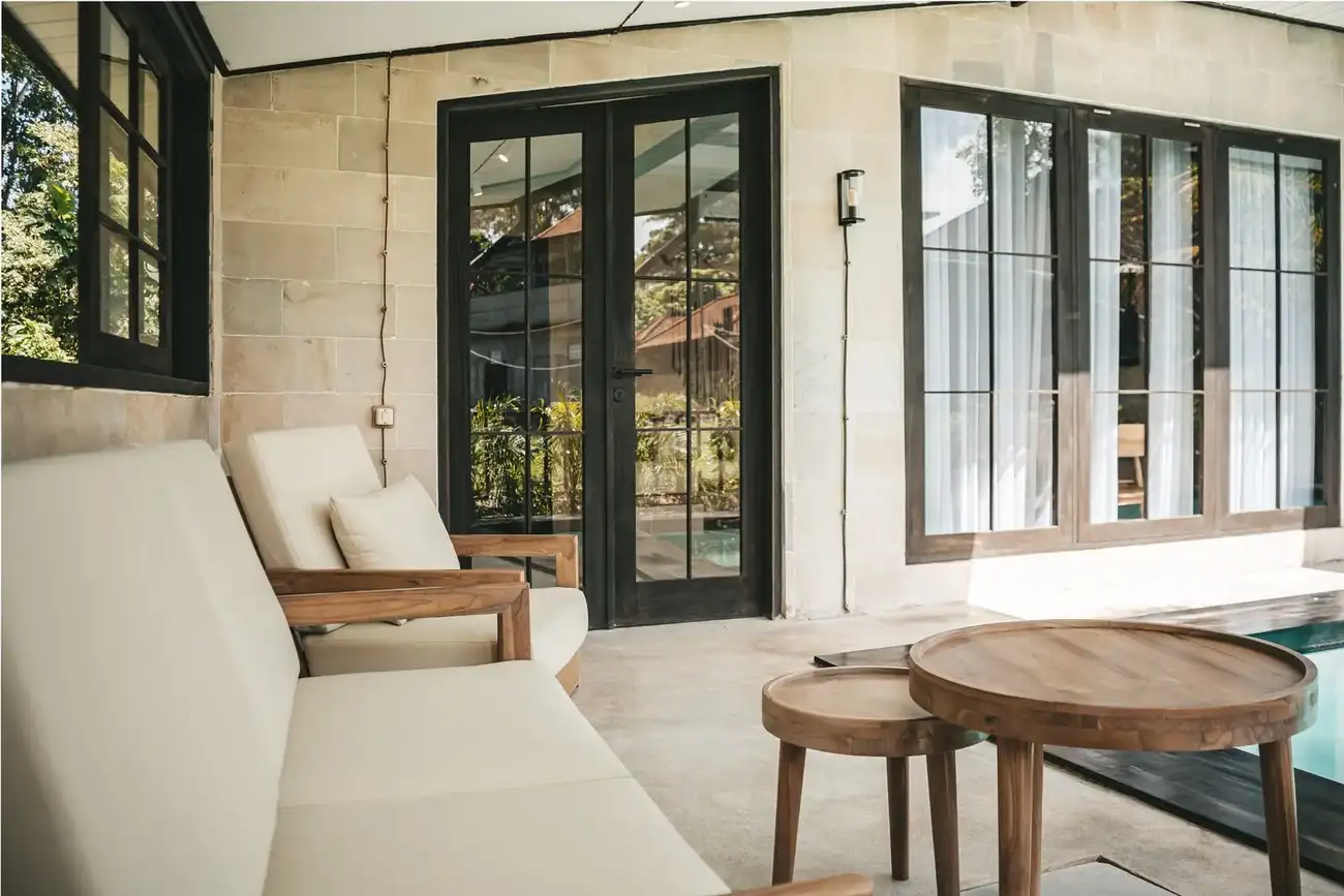 Rumah Villa is a ready-to-move-in complex of two-bedroom villas located in a scenic area of Bali, just minutes from the center of Ubud. Each villa offers stunning jungle views, creating a feeling of privacy and a deep connection with nature. Designed for modern living, the villas feature 2 bedrooms, 2 bathrooms plus a guest toilet, a spacious living area, an open-plan kitchen and dining space, and a private terrace. A private swimming pool completes the experience, allowing residents to relax in complete tranquility. The complex is only 13 minutes from central Ubud and the popular PARQ lifestyle hub.