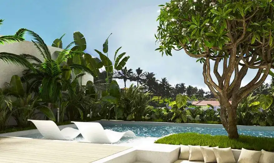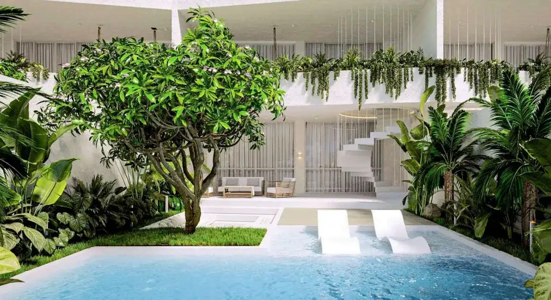The complex features villas with 2 or 3 bedrooms and 3 or 4 bathrooms, each designed for comfortable living and privacy. Every villa includes a modern kitchen and dining area, a private swimming pool, and parking for one car or two bikes. Residents also enjoy shared wellness-focused infrastructure, including a cold plunge pool, sauna, yoga hall, outdoor covered showers, relaxation areas, a coworking space, table tennis, and a children’s sand area. Bali Zen is a perfect choice for living, retreat-style stays, or long-term investment in one of Ubud’s most peaceful green zones.