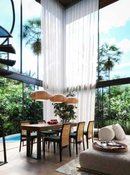 NEAT HOUSE это современный комплекс вилл, расположенный в живописном районе Унгасан на полуострове Букит, Бали. Разработанный компанией DM PROJECT, он предлагает элегантные виллы с двумя спальнями, которые сочетают в себе современный дизайн, комфорт и удобство, создавая идеальные условия для жизни и отдыха. Каждая вилла располагает просторными спальнями, современными ванными комнатами, уютной гостиной, полностью оборудованной кухней с обеденной зоной, частным бассейном и гардеробной, обеспечивая одновременно функциональность и стиль.