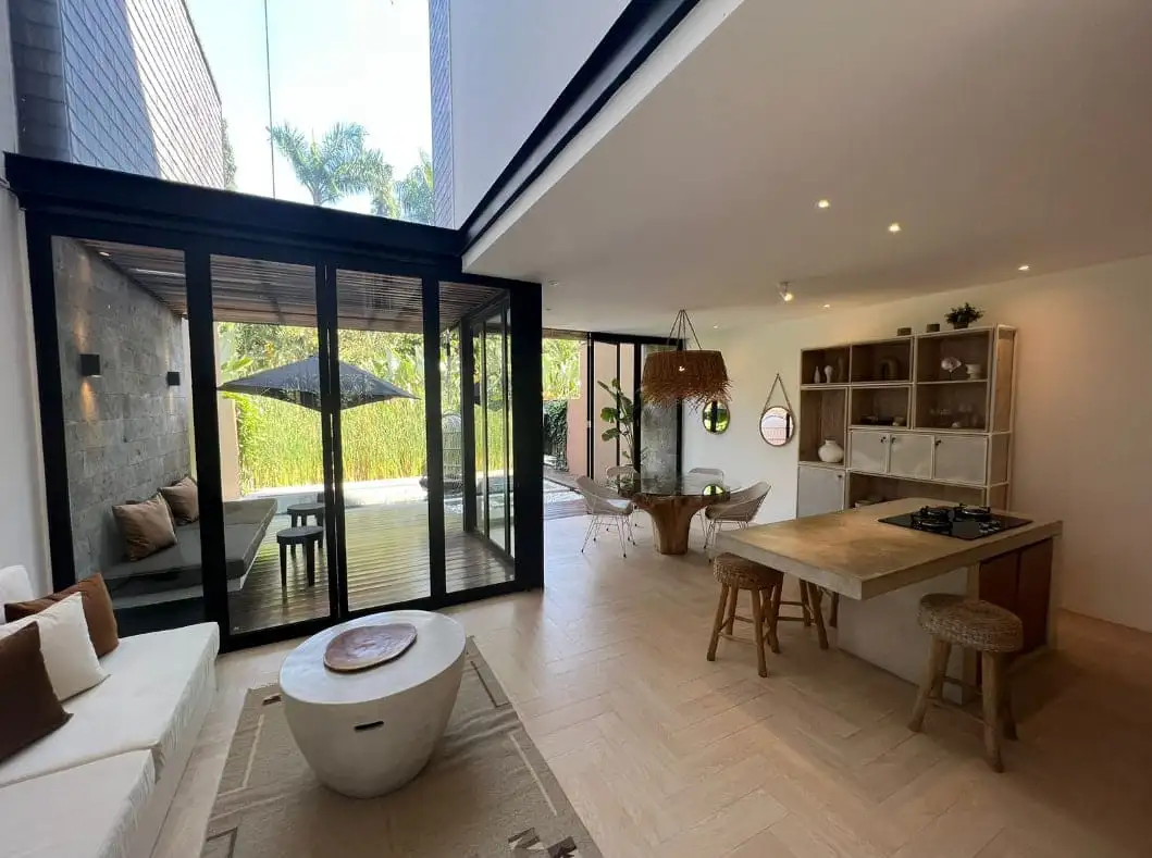 Вилла располагает 3 спальнями, 2 современными ванными комнатами, полностью оборудованной кухней, уютной гостиной, частным бассейном, садом, зоной отдыха на открытом воздухе, гаражом, кладовой и прачечной. Вилла выполнена в современном стиле с просторными, наполненными светом интерьерами, Таман Тамора Вилла Сочетание комфорта, функциональности и отличного расположения для жизни и отдыха в одном из самых привлекательных районов Бали.