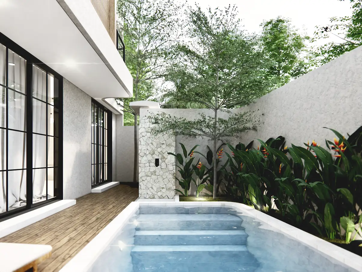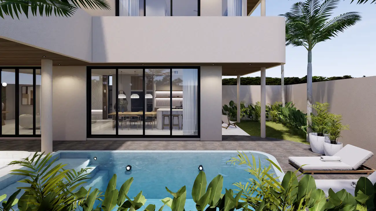 Yolla Nunggalan Residences Это современное сообщество из 20 вилл, построенных по единому генеральному плану и сочетающих минималистскую архитектуру с оздоровительным стилем жизни. Бали. Двухэтажные виллы отличаются просторными планировками, частными бассейнами и террасами на крыше с панорамным видом на океан. Каждая вилла полностью меблирована и готова к проживанию: здесь есть кухня-столовая, гостиная и от 1 до 4 спален с ванными комнатами, что создает приватную и комфортную атмосферу тропической жизни.
